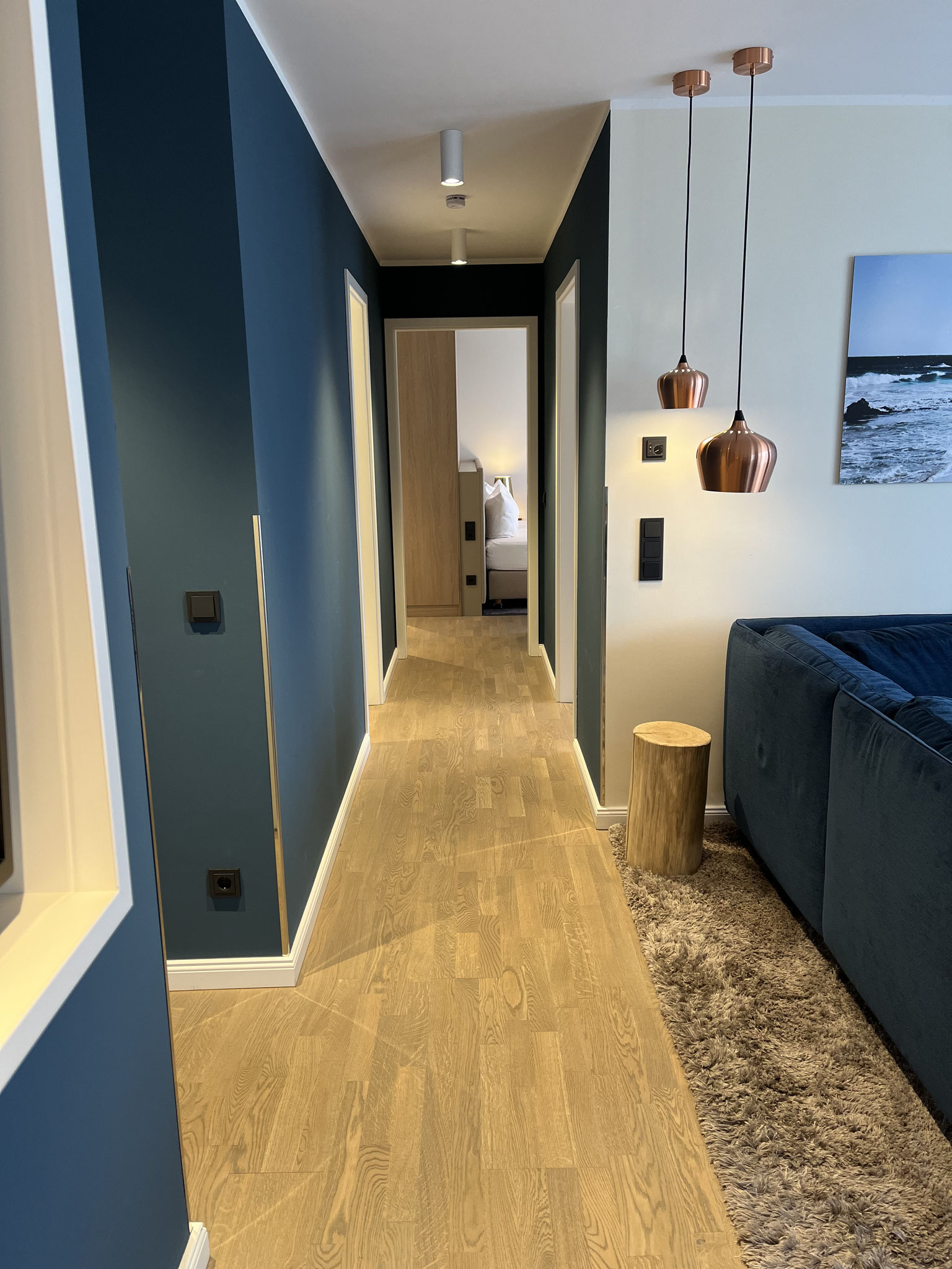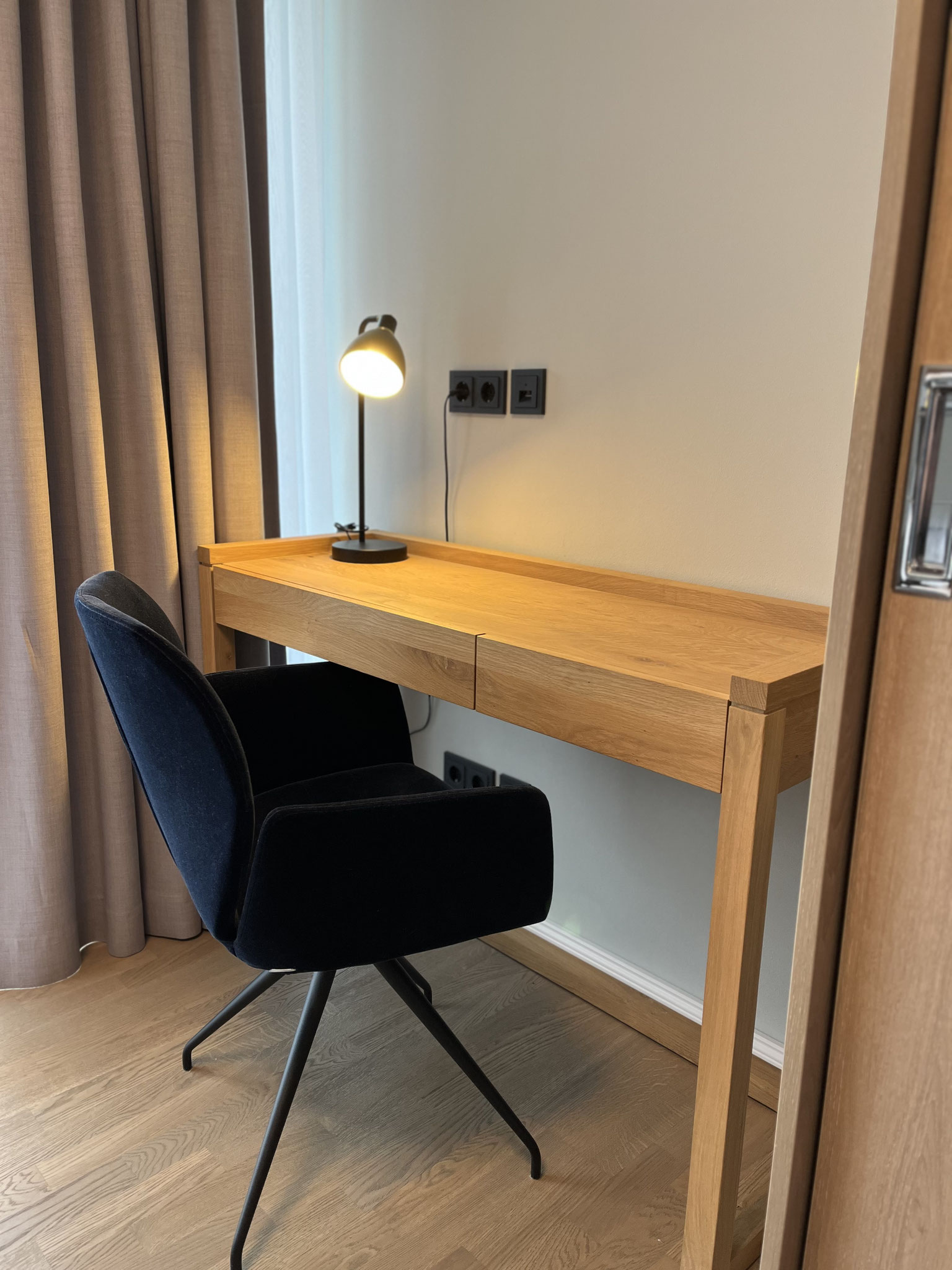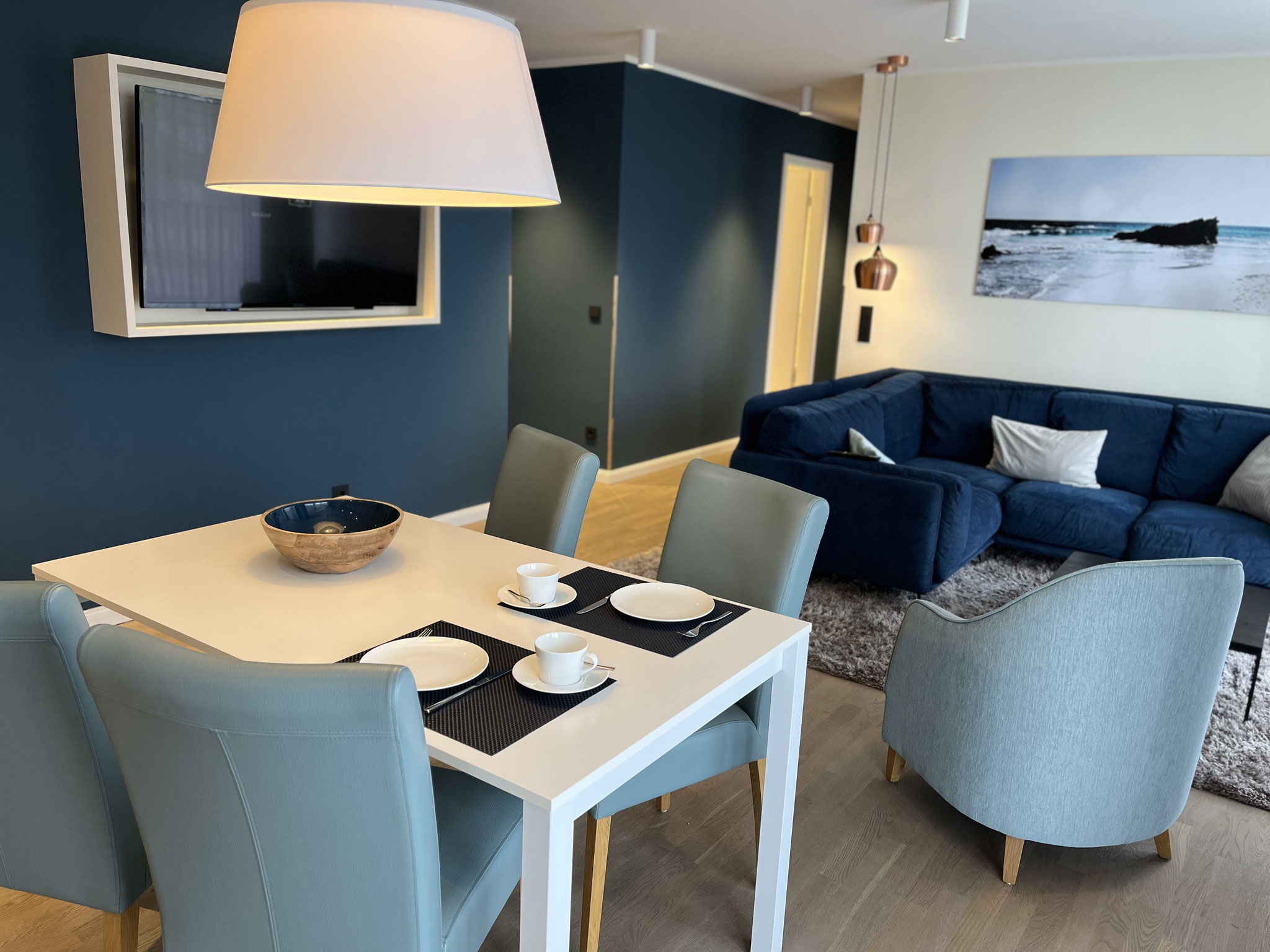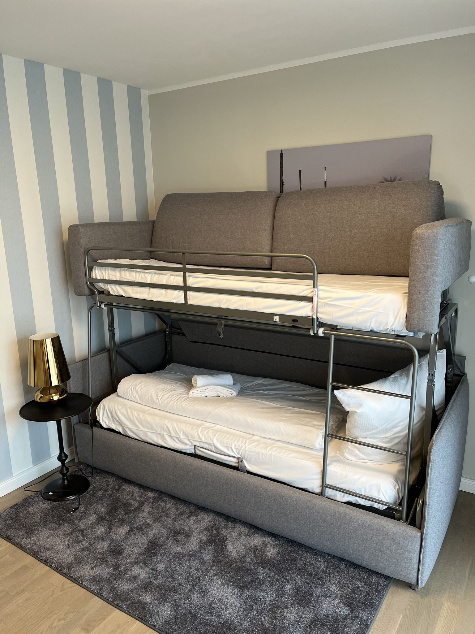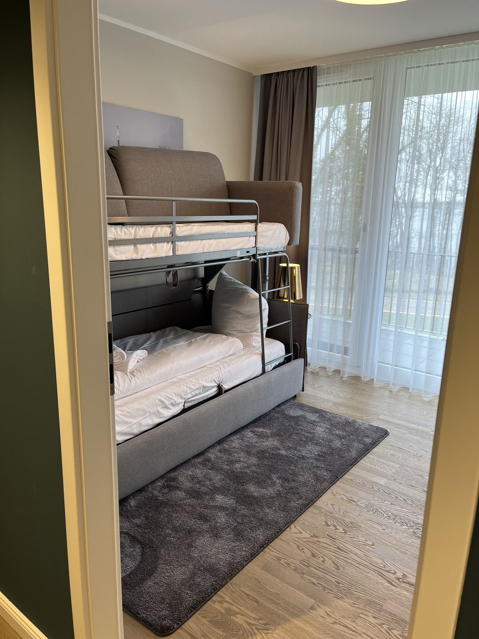 Die Suite ist sehr zuvorkommend eingerichtet und bietet Ihnen eine Küchenzeile mit Esstisch für 4 Personen. Desweiteren haben Sie ein Arbeitszimmer mit Doppelstockbett, welches sich auch für