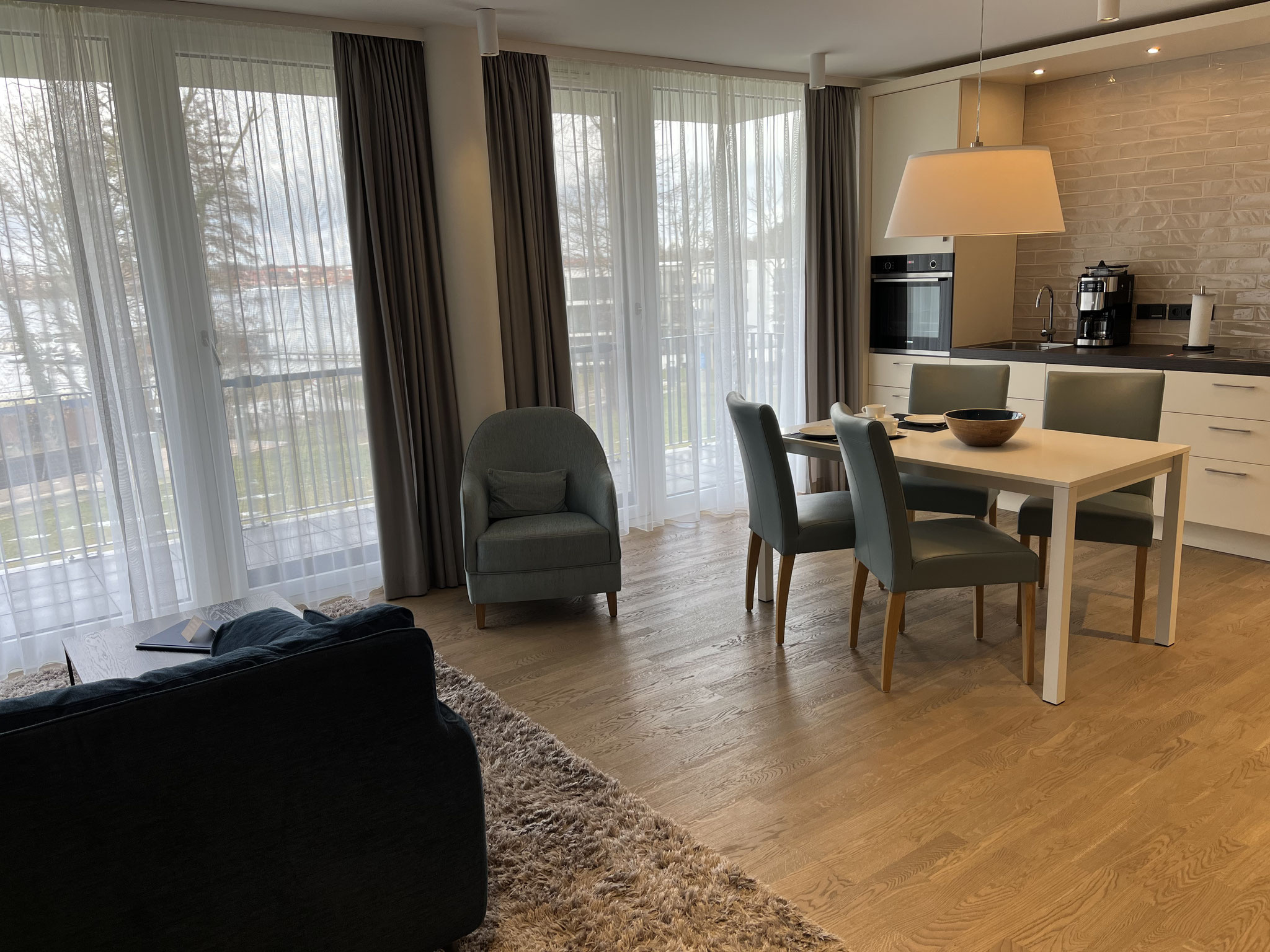 Ausblick: Offener Blick vom Wohnzimmer und Balkon auf die Müritz
